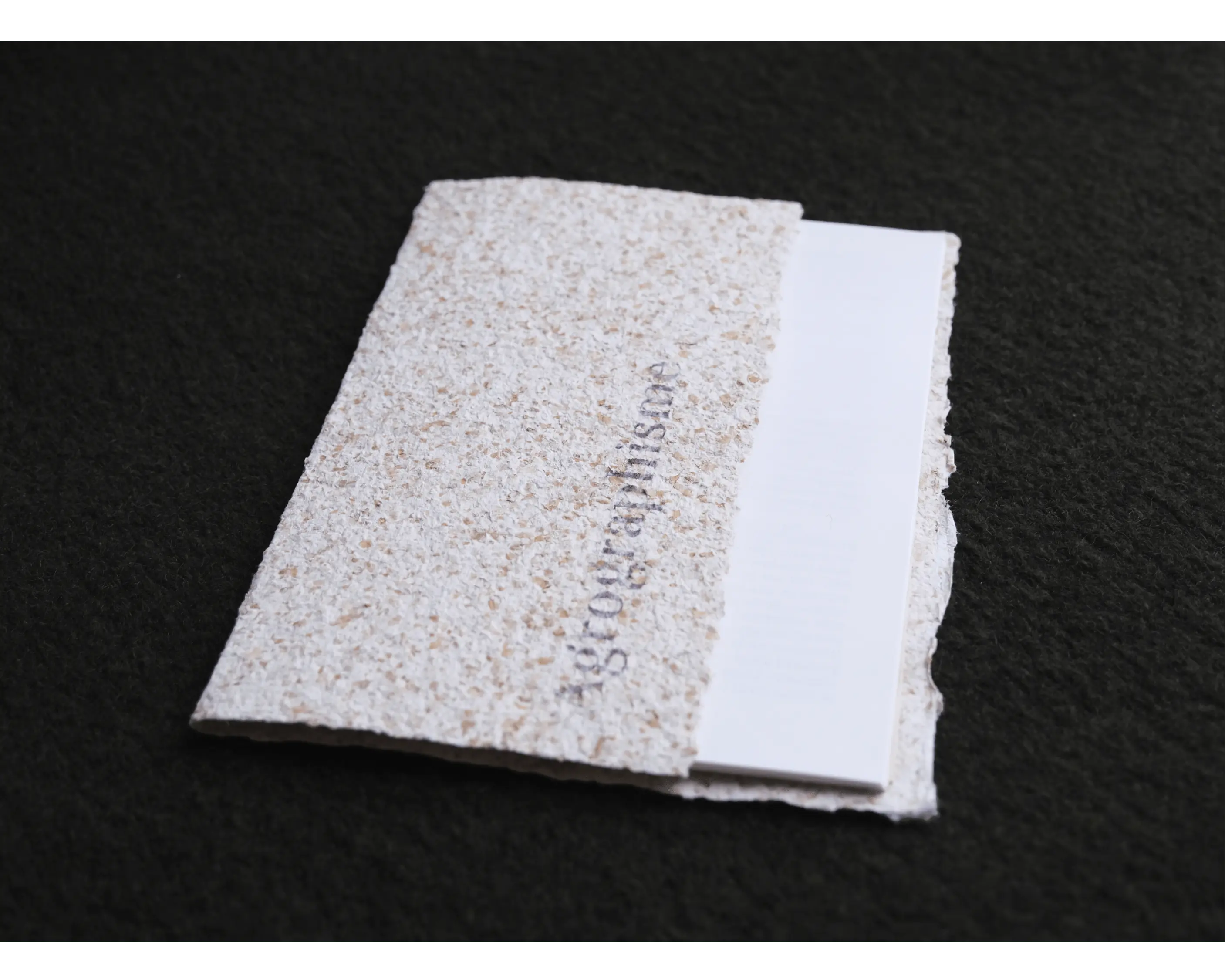 La couverture est réalisée à partir de son de blé, par l'artisan papetier Bruno Pasdeloup. L'ouvrage est assemblé en reliure suisse, révélant les coutures faites-main.