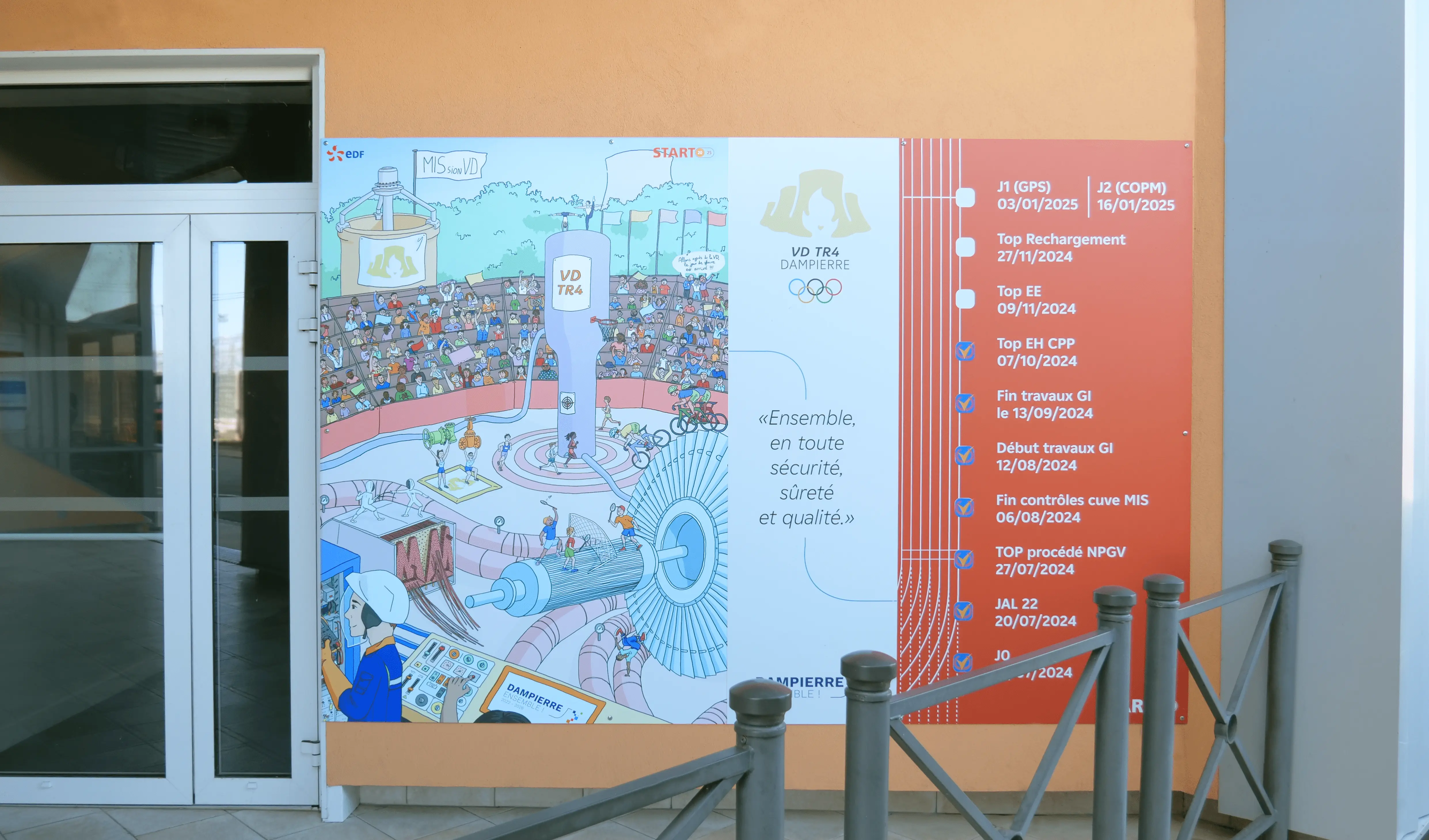 Rémy Laissac, Chef de projet de l'arrêt, m'a sollicité pour concevoir l'identité visuelle de cette Visite Décénale. Elle représente les grandes étapes de l'arrêt dans un univers sportif et joyeux à la manière des JO 2024 !