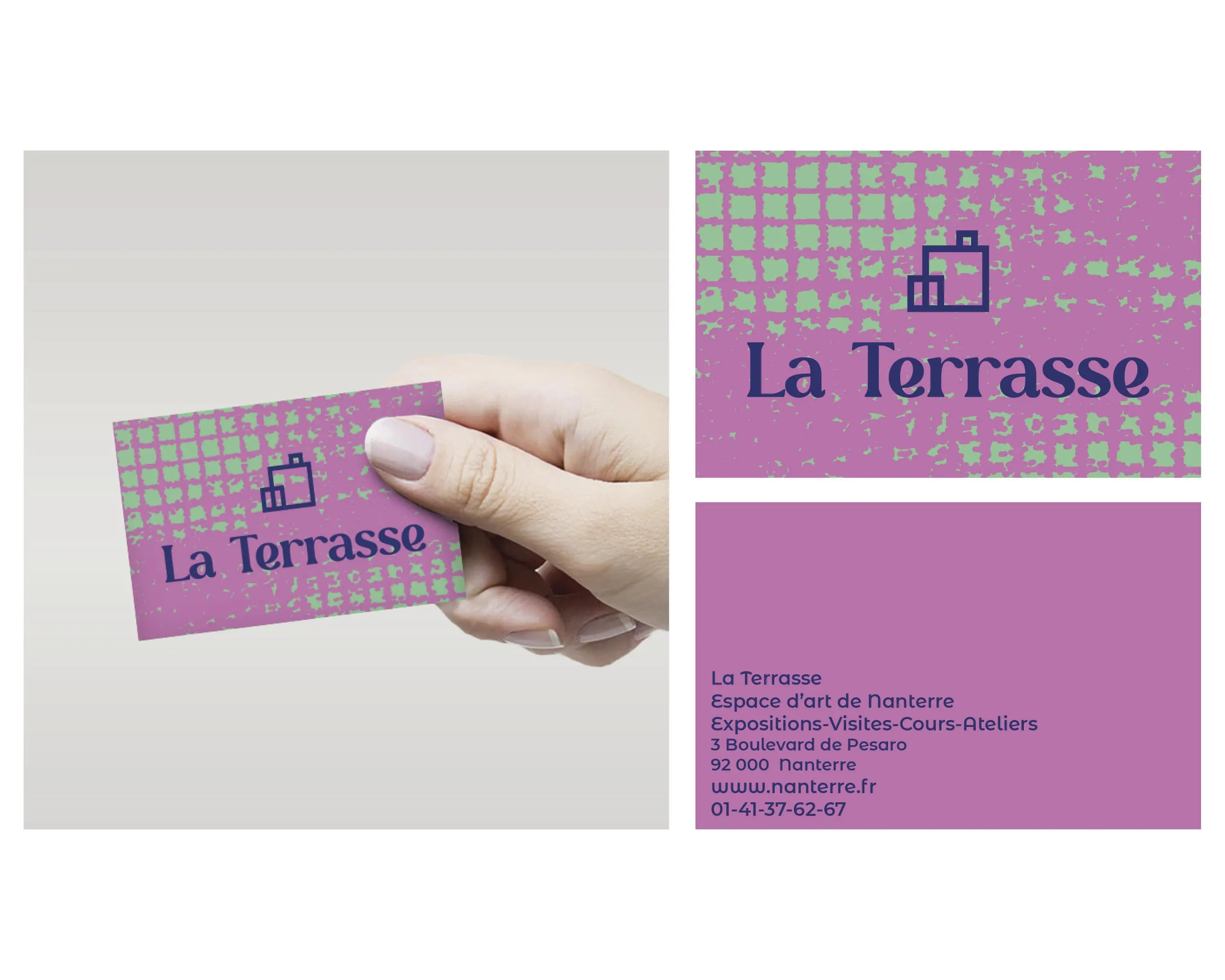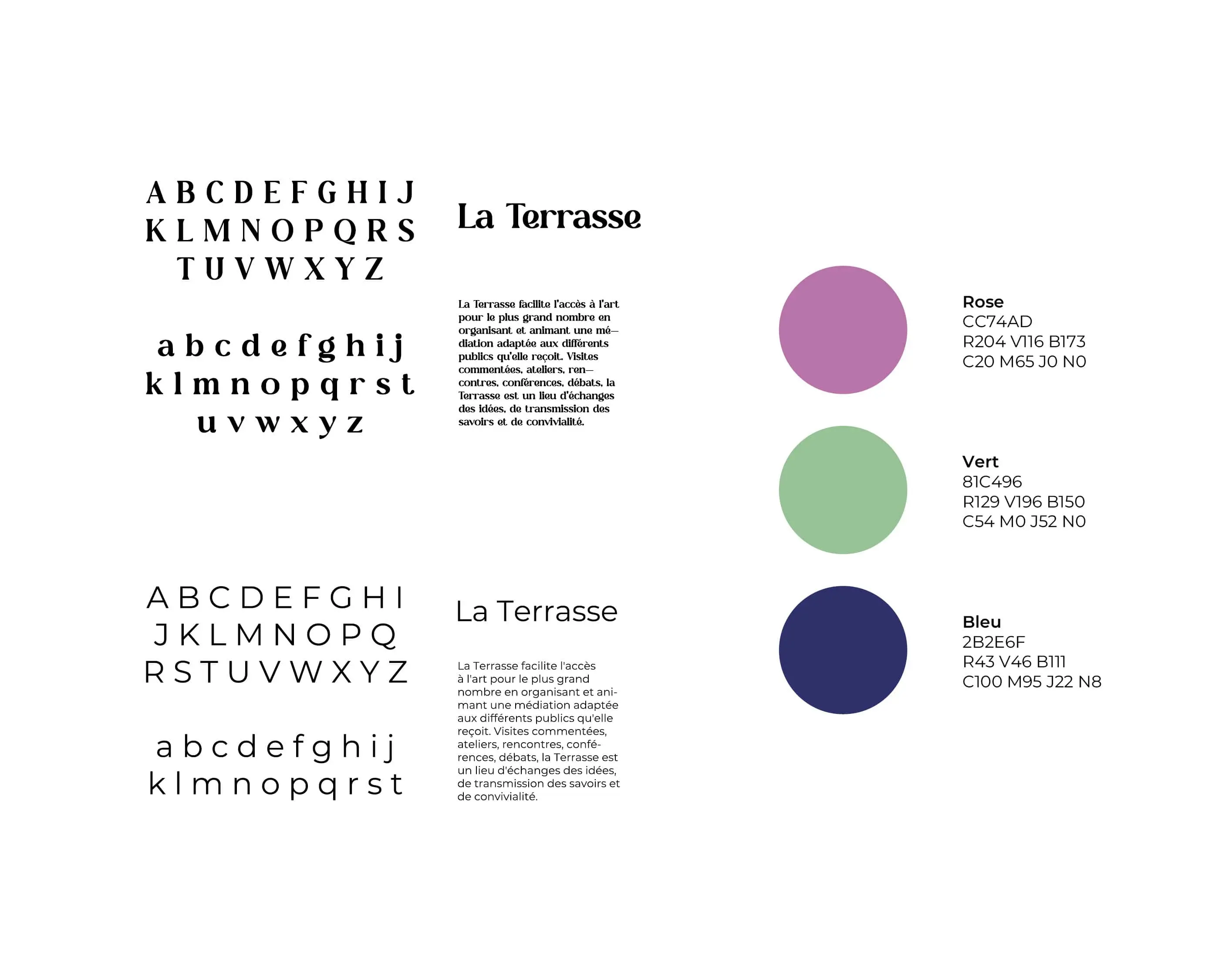 Les trois couleurs choisies donnent un ton dynamique et coloré aux différents supports de communication, à l'image de La Terrasse qui se veut vecteur d'énergie dans le quartier.