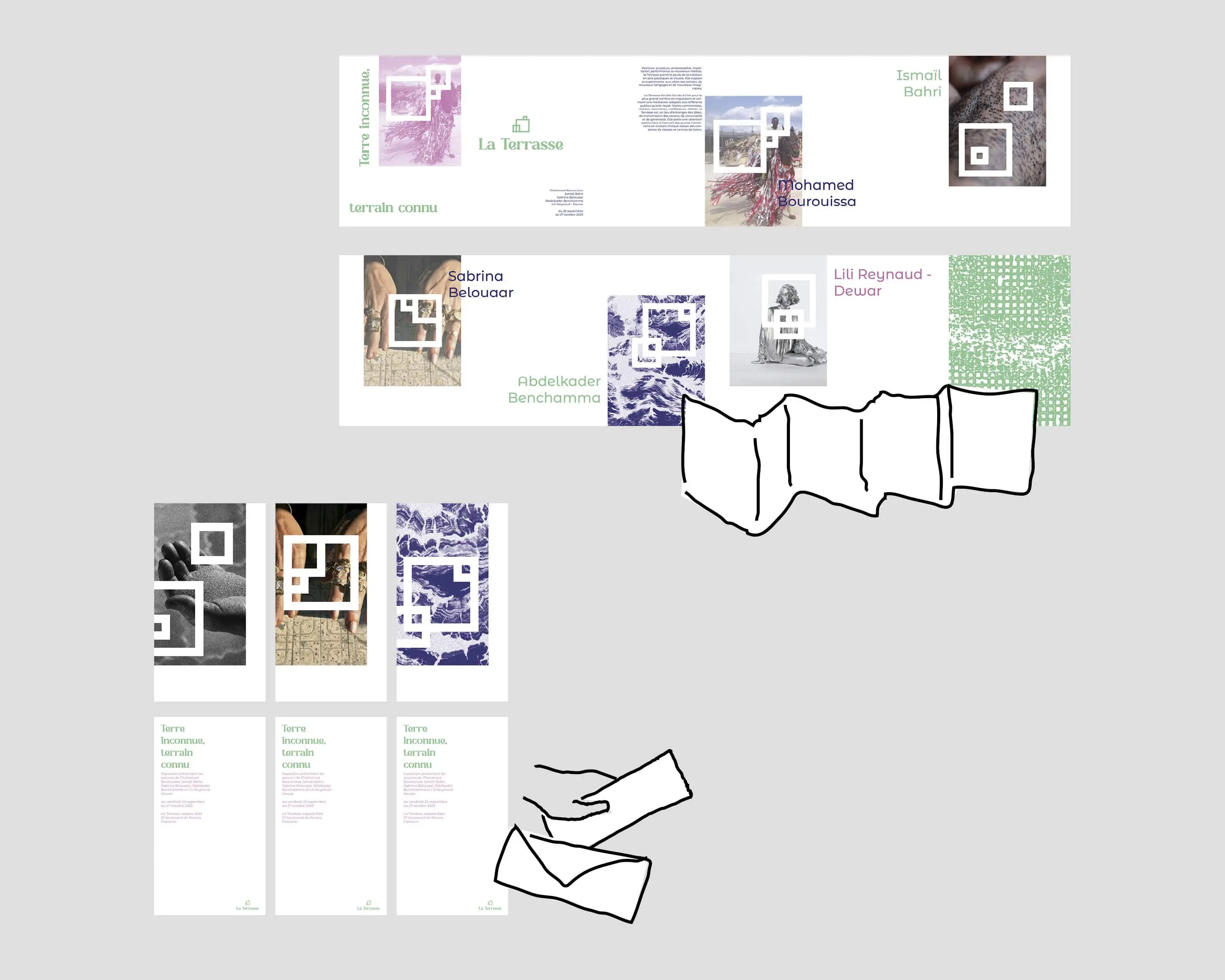 L'identité visuelle peut se décliner sur des cartons d'invitation ou encore des livrets d'exposition.