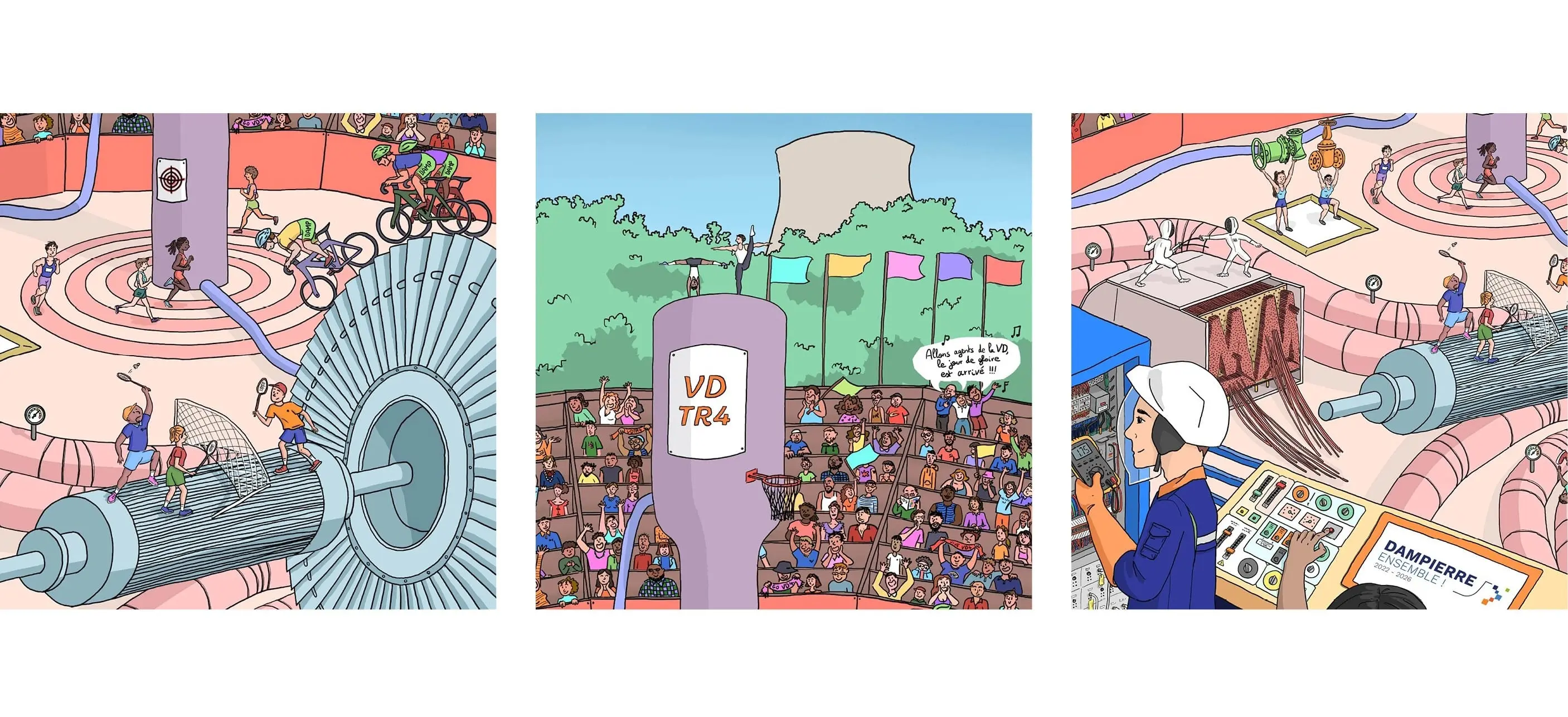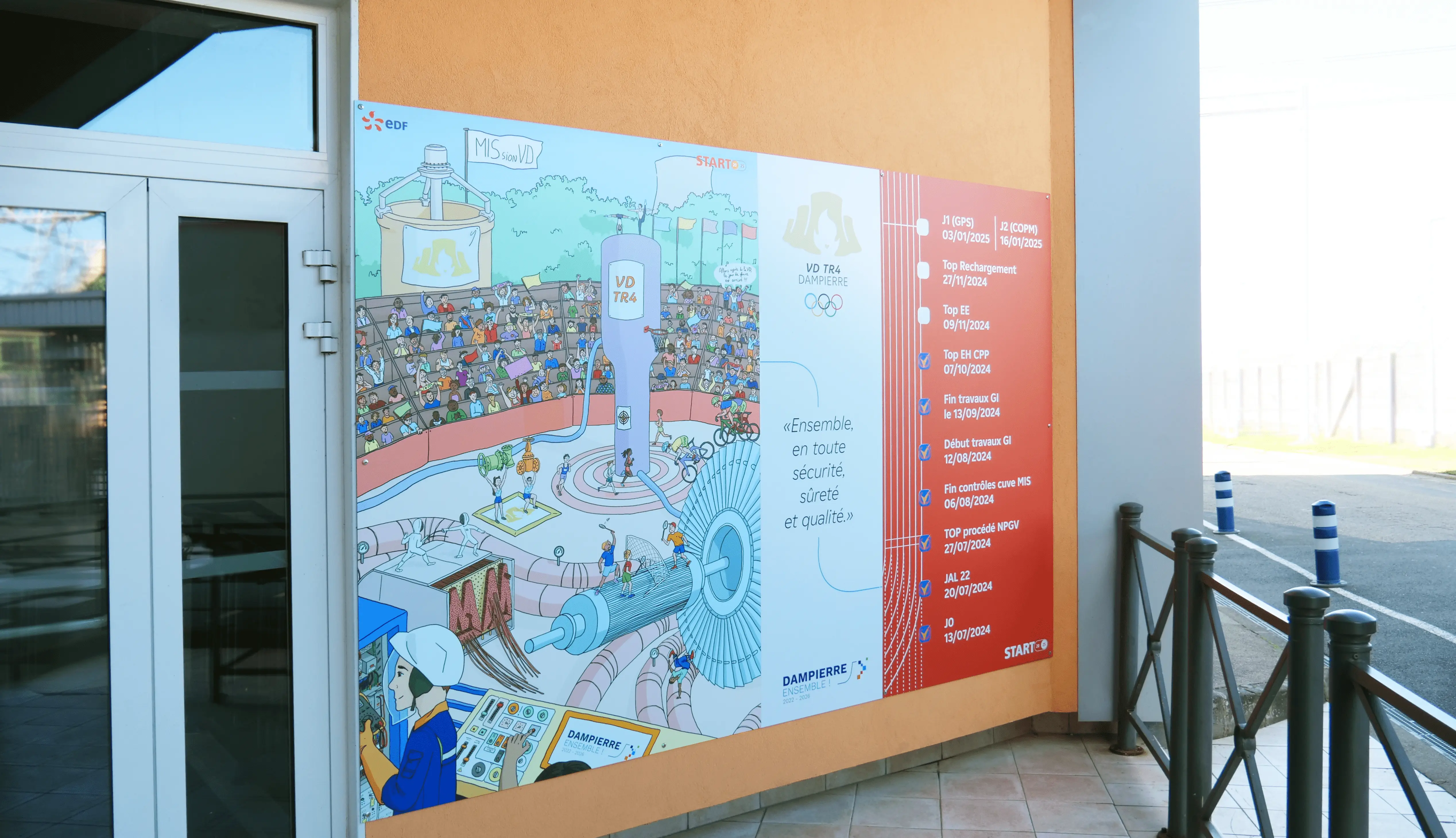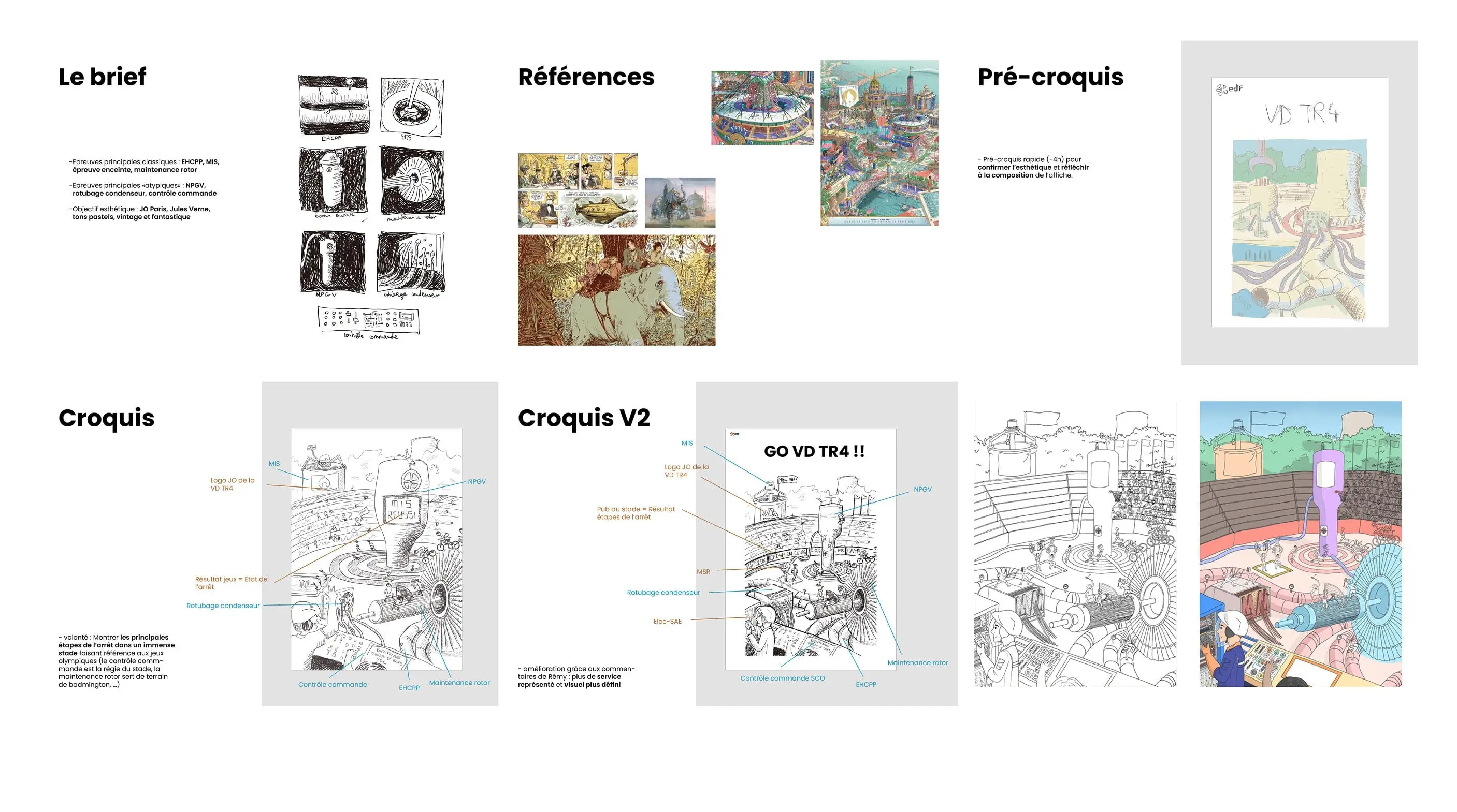 Rémy Laissac, Chef de projet de l'arrêt, m'a sollicité pour concevoir l'identité visuelle de cette Visite Décénale. Elle représente les grandes étapes de l'arrêt dans un univers sportif et joyeux à la manière des JO 2024 !
